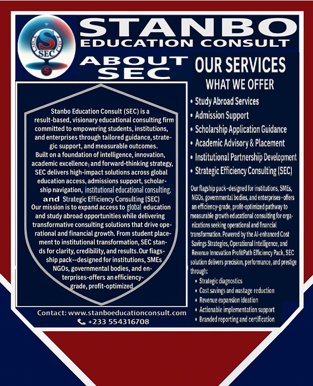 STANBO EDUCATION CONSULT (SEC), Accredited, Verified, Registered, Recognized, Represented. Bridging Borders with Certified Excellence. Where Ghana's Guidance Meets Global Educational Consultancy Standards. Leading Ghana's Voice in Global Education Consultancy Services. Representing Ghana, Shaping Global Educational Consultancy Standards, STANBO EDUCATION CONSULT (SEC): Ghana's Gateway to Certified Educational Consultancy Excellence, Ghana's Voice in Global Educational Consultancy Standards. Local Leadership with Global Impact. Counseling Ghana Forward with Global Certification.