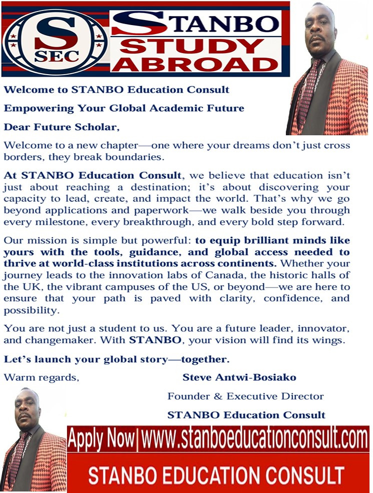 #STANBO #ABCC #GlobalCounselors #GhanaStudyAbroadEducationalConsultancyServices #CertifiedExcellence #WeAreLive.